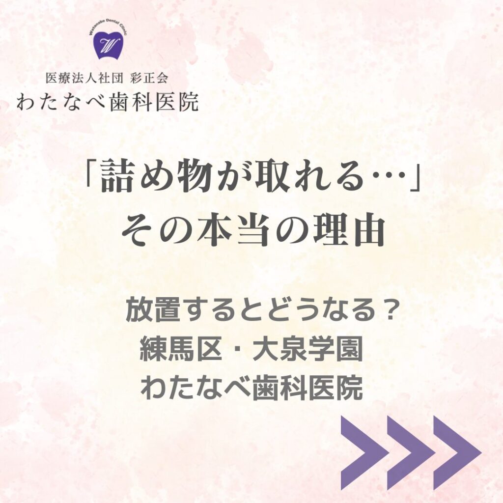 「詰め物が取れる…」その本当の理由 放置するとどうなる?【練馬区・大泉学園】