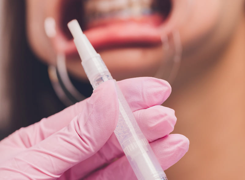 歯ぐきや唇を覆ってから、歯の表面にホワイトニング剤を塗布します。